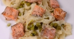 Lososa vzamite iz pakiranja in ga položimo v segreto olje, začinite in rahlo podušite, zalijte s sladko smetano in dodajte par kapljic belega vina.