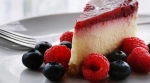 4. Operite preostalo jagodičje, ga preberite in osušite. Po potrebi ga zrežite na manjše koščke. Tretjini sadežev dodajte preostali sladkor in 100 ml vode in vse skupaj zavrite. Sadje nato pretlačite, ga pogladite skozi cedilo in primešajte še preostalo jagodičje. Skutni kolač nato zrežite na koščke in jih postrezite s sadno omako. Po želji okrasite z meliso.Hlajenje približno 4 ure.