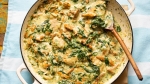 Piščanec z lisičkami in špinačo v smetanovi omaki