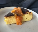 Na sobno temperaturo ohlajeno sirovo torto postrežemo skupaj z breskovo omako.