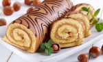 3 Čez pečen, vroč biskvit položimo svež peki papir in biskvit zavijemo v rolo, da se malo ohladi in oblikuje.