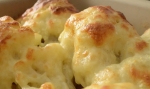 500 g cvetače 1/2 čajne žličke kumine kurkuma mleti poper 2 jajci 1 jogurt 2 žlici kisle smetane parmezan ali riban sir