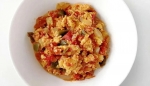 1/2 kg manj mastne svinjine 7 dag maščobe 20 dag paradižnika 3 jajca 30 dag sveže paprike 7 dag čebule strok česna peteršilj nekaj žlic jušne osnove sol poper