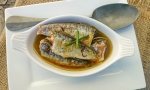 1 Sardele, morajo biti res sveže, temeljito očistimo in operemo s hladno vodo. V široki kozici zavremo ribjo osnovo, belo vino, sol, poprova zrna, rožmarin in žajbelj.