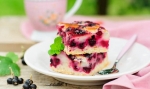 2 Pekač namastimo z maslom in vanj vlijemo zmes ter jo enakomerno razporedimo. V zmes dodamo ribez tako, da ga posujemo po vrhu. Količino ribeza načeloma, ne glede na recept, izberemo sami.