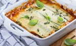 4 Na dno pekača v katerem bomo pekli lazanjo damo malo mletega mesa in malo bešamela. To bo preprečilo, da bi se testenine prilepile na dno pekača. Na bešamel in meso položimo lističe testenin, nato mleto meso, potresemo z obema siroma, namažemo z bešamelom in na bešamel položimo rezine bučk. Na bučke damo lističe testenin in postopek ponovimo še enkrat ali dvakrat (odvisno od velikosti in višine pekača). Na zadnjo plast testenin položimo še nekaj rezin bučk.