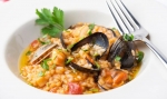 3 Po 15 minutah dodamo očiščene morske sadeže, na drobno nasekljano zeleno ter še naprej kakšnih 5 minut mešamo in zalivamo z jušno osnovo.