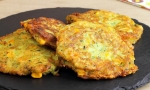 2 srednje veliki bučki 1 čebula, drobno sesekljana 2 stroka česna, sesekljana 1 skodelica naribanega sira (npr. parmezan, cheddar ali gouda) 1/2 skodelice drobtin (koruzne ali drobtine iz kruha) 2 jajci 2 žlici sveže sesekljanega peteršilja Sol po okusu Poprova mešanica po okusu Oljčno olje (za peko)