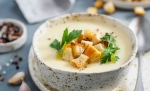 4 V ponvi raztopimo maslo in popečemo kruh, ki smo ga narezali na manjše kocke. Postrežemo jih zraven juhe.