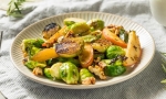 5 Na servirni krožnik položimo brstični ohrovt in solato in okrasimo s kandiranimi orehi. Postrežemo toplo ali hladno.