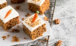5 Za glazuro zmešamo preostalo maslo s kokosovo maščobo in svežim sirom ter dodamo sladkor v prahu in vaniljev sirup. Vse skupaj zmešamo in premažemo po ohlajenem kolaču.