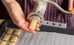 3 Testo po kosih damo v strojček za mletje piškotov in s poljubnim nastavkom oblikujemo enako dolge piškote.