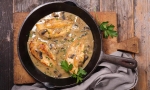 3 Na srednje močnem ognju dušimo 10 minut, dokler na povre polovica tekočine. Nato v ponev dodamo še žlico gorčice in smetano za kuhanje.