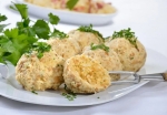 4 Zmes malo ohladimo in jo primešamo h kruhovim kockam. Dobro premešamo in pustimo nekaj časa počivati. Dodamo še drobtinice in malo moke (po potrebi). Masa ne sme biti pretrda. Z rokami jo oblikujemo v kroglice enake velikosti. Kuhamo jih v slanem kropu 12 minut in postrežemo takoj.
