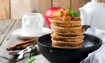 Palačinke obložimo z jabolki in jih zložimo eno na drugo. Po želji lahko palačinke polijemo še z medom ali javorjevim sirupom, če nam je všeč.
