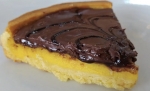 Torto prelijemo s čokoladnim ganachejem in površino poravnamo. Vsaj za eno uro jo postavimo v hladilnik, da se bo lažje rezala.