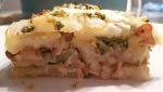 Potresemo še s koščki masla, pokrijemo (če nimamo pekača s pokrovko, lahko uporabimo alu folijo) in pečemo 20 min na 180 °C. Nato odkrijemo in pečemo še 15 min. Takrat lahko ljubitelji sira povrhu potresejo še sir za pizzo, ki se lepo zapeče.