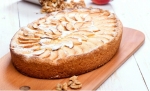V dobro premešano gladko maso dodamo na drobno narezane koščke dveh jabolk ter cimet (2 ali 3 ščepce, količina cimeta je odvisna od tega, kakšen ljubitelj cimetovega okusa smo). Premešamo in vse skupaj stresemo v okrogli pekač premera 26 cm, ki smo ga predhodno namazali z maslom in dno malce pomokali.