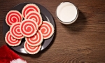 Odstranimo še zgornjo plast papirja in obrežemo robove, da bodo enakomerni. Začnemo zavijati v svaljek, spodnji papir sproti odstranjujemo. Tako dobljen svaljek zavijemo v plastično folijo in postavimo za eno uro v hladilnik, da bomo testo lažje narezali.
