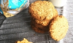 Vse sestavine skupaj zamesimo v testo. Oblikujemo kroglice in jih na pekaču potlačimo, da dobimo nizke okrogle piškote.