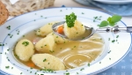Z dvema žlicama oblikujemo za mandelj velike žličnike in jih polagamo v vrelo juho.