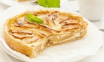 Razporedimo skutni nadev po testu, nato pa nanj enakomerno razporedimo pripravljene jabolčne rezine.