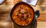 Začinimo s poprom, papriko, majaronom in timijanom, dobro premešamo, dodamo še suho meso in klobase in na zmernem ognju dušimo. Po potrebi dolivamo vodo.