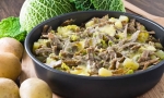 200 g krompirja 400 g ohrovta 180 g sira casera (ali asiago, fontina) 80 g parmezana 110 g masla 3 stroki česna sol