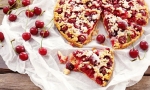 Testo ohladimo, rob pekača dobro namažemo z maslom in s preostalim testom oblikujemo približno 3 cm visok rob. Na pečeno osnovo razporedimo višnje in pripravimo še maslene drobtine. Moko presejemo, dodamo sladkor, vanilijev sladkor in kosmiče masla. Najlažje kar z rokami oblikujemo drobtinice. Te posujemo po višnjah in pito pečemo od 30-40 minut (do zlato rjave barve) na 200 °C.