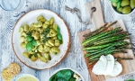 Špargljeve njoke lahko jemo z različnimi omakami: lahko naredimo paradižnikovo in pikantno omako ali pa omako s smetano, čebulo in česnom.