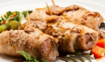 Vsak zrezek obložimo z rezino pršuta in žajbljevimi listki. Zvijemo jih in zvitke spnemo z zoborebci.