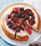 Limonova sirčkova torta s pečenimi slivami in robidnicami