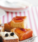 Pustimo, da se malo ohladi, nato z jedilnim nožem potegnemo ob robovih pekača. Biskvit zvrnemo na desko in ga narežemo na kocke. Zraven se lepo prileže sladoled.