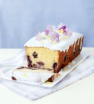 Pustimo, da se pecivo ohladi v modelu, nato ga s pomočjo papirja za peko dvignemo in prenesemo na pladenj. Sladkor v prahu presejemo v skledo in primešamo toliko limonovega soka, da dobimo gosto in gladko glazuro. Namažemo jo po vrhu peciva, nato pa po želji okrasimo še z limonovo lupinico in užitnimi cvetlicami. Narežemo na rezine in postrežemo, po želji pa lahko na vsak kos dodamo še žlico grškega jogurta in žlico limonove jajčne kreme ali marmelade.