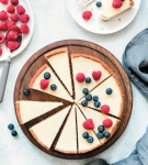 Z nožem povlečemo ob obodu pečene torte, da jo ločimo od modla, in v modlu postavimo na kuhinjsko mrežico, kjer naj se popolnoma ohladi. Med ohlajanjem se bo še učvrstila. Nato torto ohlapno pokrijemo s folijo in postavimo v hladilnik za 6 ur (pokrito torto lahko v hladilniku hranimo do 3 dni). Odstranimo obod modla in torto prenesemo na servirni krožnik. Preden jo postrežemo, naj se ogreje na sobno temperaturo. Po želji torto okrasimo s svežim jagodičjem.