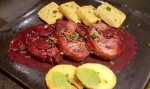 Zrezke postavite na krožnik, prelijte z refoškovo omako in po vrhu posujte še divje šparglje.