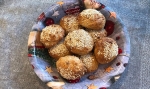 Posujemo jih s sezamom in pečemo v predogreti pečici 40 minut na 180 °C.