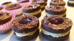 Z ganašem nadevamo slaščičarsko vrečko in jo v obliki kroga oziroma prstana nabrizgamo na piškote, ki na sredini nimajo luknje.
