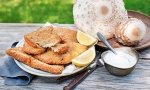 Panirane marele postrezite takoj, ko so pečene, z omako po vaši izbiri, kot je na primer tatarska omaka, jogurtov preliv ali pa kar z limoninim sokom.