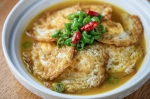 Ko so jajca pripravljena, jih previdno prenesite v juho. Pustite jih nekaj minut v juhi, da se okusi prepojijo.