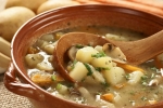200 g gob (jurčki, lisičke, snežke) 1 velika čebula 3 stroki česna 1 por 4 srednje veliki krompirji 1/2 gomolja zelene začimbe: rožmarin, timijan, bazilika, žajbelj, majaron, solimo in popramo po okusu 2 lovorjeva lista