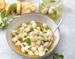 Kroglice zmešajte s pripravljeno zmesjo in jih dajte v kozarec. Prelijte z oljem, da so kroglice mocarele popolnoma potopljene. Kozarec zaprite in pustite v hladilniku vsaj 24 ur.