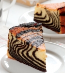 V drugi skledi zmešamo moko, pecilni prašek in vaniljev sladkor. Med počasnim mešanjem postopoma dodajamo rumenjakovo mešanico in nazadnje nežno, da ne upade, primešamo še sneg. Maso razdelimo na dva dela. V en del vmešamo kakav v prahu, zmešan s 3 žlicami vrele vode.
