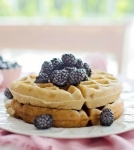 Pekač zapremo in vaflje spečemo do zlato rjave barve. Pečene posujemo s sladkorjem v prahu in postrežemo s poljubno prilogo (javorovim sirupom, marmelado, čokoladnim namazom, sadjem ali smetano).