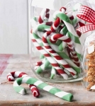 Narežemo jo na 12 cm dolge palčke in vsako na eni strani ukrivimo. Položimo jih na pekač, obložen s papirjem za peko. Tako naredimo tudi z belo in zeleno maso. Palčke pustimo sušiti vsaj en dan in pol do dva dni. Nato jih zavijemo v prozoren papir ali vstavimo v steklen okrasni kozarec.