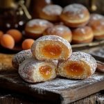droži (približno 160 g) 90 g bele pšenične moke tip 500 20 g rjavega sladkorja ali sladkorja v prahu 1 žlica matičnih droži 40 g vode 500 g bele pšenične moke tip 500 110 g hladnega mleka 60 g rjavega sladkorja 3 jajca (približno 165 g) 120 g masla, razrezanega na kocke, sobne temperature (ne premehkega in ne pretrdega) 1 žlica ruma (približno 10 g) 10 g soli ščep vanilje v prahu naribana lupinica 1 ekološke limone (po želji) 1 l olja za cvrenje (sončničnega, repičnega ali kokosovega) marmelada za polnilo (po želji) kristalni sladkor za povaljanje ali sladkor v prahu za posip Krofi z drožmi in marelično marmelado