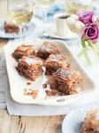 Pekač vzamemo iz pečice in baklavo takoj prelijemo s polovico ohlajenega rožnega sirupa. Nato jo pustimo počivati 30 minut, da se sirup vpije med plasti. Z ostrim nožem jo razrežemo po označenem vzorcu. Postrežemo z grškim jogurtom in preostalim sirupom.