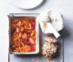 Sadje razpolovimo in mu odstranimo koščice. Breskve in nektarine narežemo na krhlje. Pečico segrejemo na 180 °C.