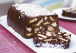 Model za 900-gramsko štruco obložimo z dvojno plastjo prozorne kuhinjske folije. Maslo, čokolado in sladkor 2 do 3 minute topimo v mikrovalovni pečici pri srednji jakosti ali pa jih stopimo v skledici, ki smo jo postavili nad kozico, v kateri na šibkem ognju rahlo vre voda. Makrone ali piškote nalomimo na koščke, brazilske oreške grobo nasekljamo in oboje skupaj s cimetom vmešamo v stopljeno čokoladno maso.