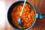 Medtem ko se vse skupaj duši, sesekljamo paradižnik in ga dodamo. Paradižnik bo vse skupaj razredčil, zato pustimo vreti še nekaj časa, največ 20 minut.